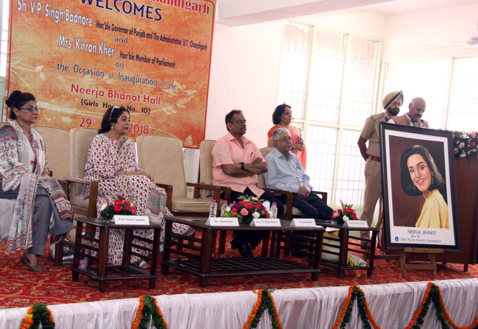 The Punjab Governor and Administrator, Union Territory, Chandigarh, Shri V.P. Singh Badnore along with Smt. Kirron Kher, Member of Parliament, Chandigarh and the Adviser to the Administrator, UT Chandigarh, Shri Parimal Rai inaugurating the “Neerja Bhanot Hall” at Panjab University, Sector-25, Chandigarh on Tuesday, May 29, 2018.