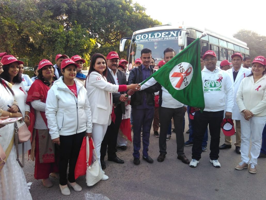 हरियाणा राज्य एड्स नियंत्रण सोसायटी की प्रोजैक्ट निदेशक डा. वीना सिंह ने सैक्टर 6 स्थित कार्यालय महानिदेशक स्वास्थ्य सेवाएं से अभियान की शुरूआत झण्डी दिखाकर की। उन्होंने बताया कि अभियान के तहत लगातार दो दिन तक लोगोें को जागरूक करने के लिए विभिन्न जिलों एवं सार्वजनिक स्थलों पर कार्यक्रम आयोजित कर एड्स के प्रति सचेत किया जाएगा। कार्यक्रम के दौरान -नो युवर स्टेट्स- विषय के तहत प्रत्येक व्यक्ति को अपने एचआईवी स्टेट्स को लेकर गांव एवं जिलास्तर पर सभाएं एवं नुक्कड़ नाटक आयोजित किए जाएगें। इसके दौरान विशेषकर जेल, विद्यार्थियों, ट्रक चालक, सीआरपीएफ पर्सनल, मैडिकल एवं पैरा लिगल स्टाफ, पीएएचआईवी और बड़ी संख्या मेें लोगों को जागरूक किया जाएगा।