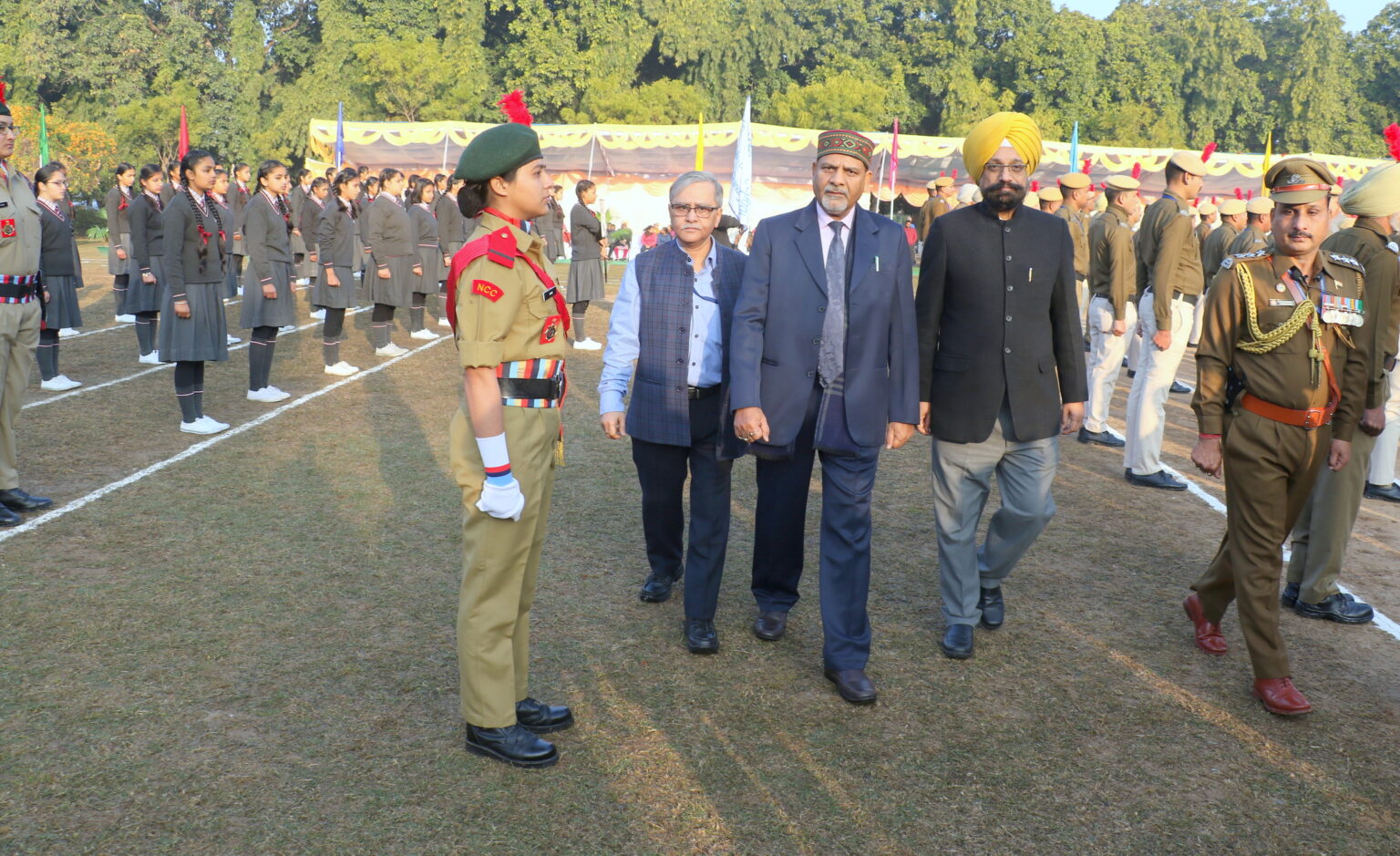 Panjab University, Chandigarh celebrated the Republic Day with patriotic fervour and enthusiasm at the University Campus. PU Vice Chancellor, Prof. Raj Kumar was the Chief Guest of the function and Smt Kusum Singh was the Guest of Honour. He unfurled the national flag at the Parade Ground. It was followed by the inspection of the Guard of Honour comprising the contingents of PU Security Staff, PU NCC boys & Girls cadets, Ankur School and Guru Gobind Singh Vidya Mandir(GGSVM)Senior Secondary School, Ratwara Sahib. While felicitating the gathering, Prof. Kumar in his key note address, urged all to take pride in part of the great Institute like PU and contribute in maintaining the respect and honour that this University has achieved over decades. He referred to various recent initiatives and achievements of the University and informed about continuously striving for improvement of services in order to make it one of the most beautiful campus of the Country. He further added that Panjab University has always been known for contributing immensely to research and in order to work in this area and consolidate our position further not only at the national but also at the international level, work in this direction has already been initiated and are in the process of signing agreements with many Universities abroad. Panjab University has a very strong alumni base. Lot of our alumni have reached the summit in their fields and have held the highest positions in their respective areas. Ha said that steps are being taken to ensure that PU alumni work hand in hand to take the University to greater heights.
