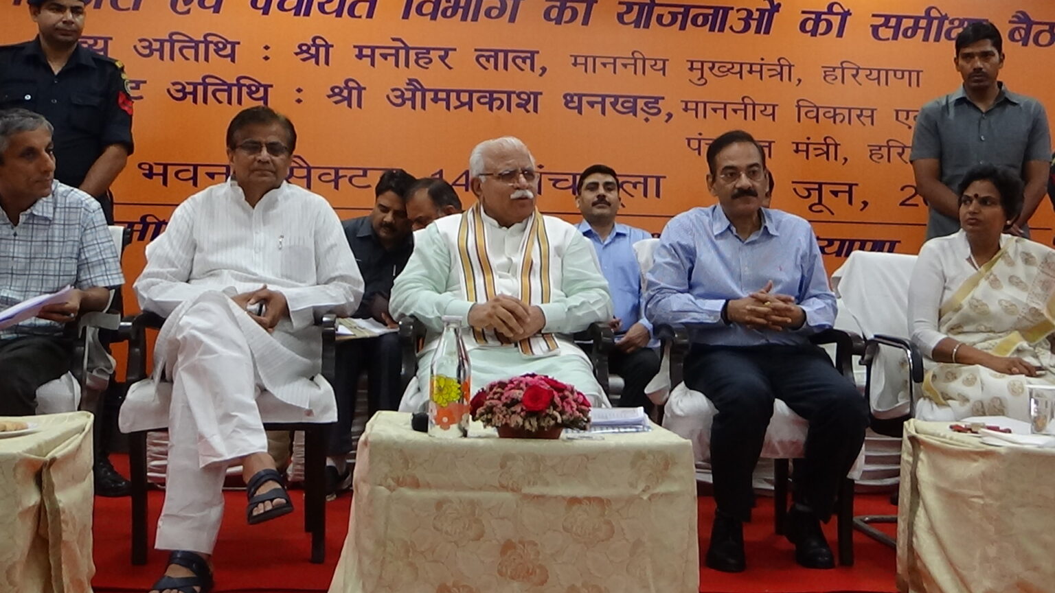 खट्टर आज किसान भवन में विकास एवं पंचायत और ग्रामीण विकास विभाग की योजनाओं की एक समीक्षा बैठक की अध्यक्षता कर रहे थे।
