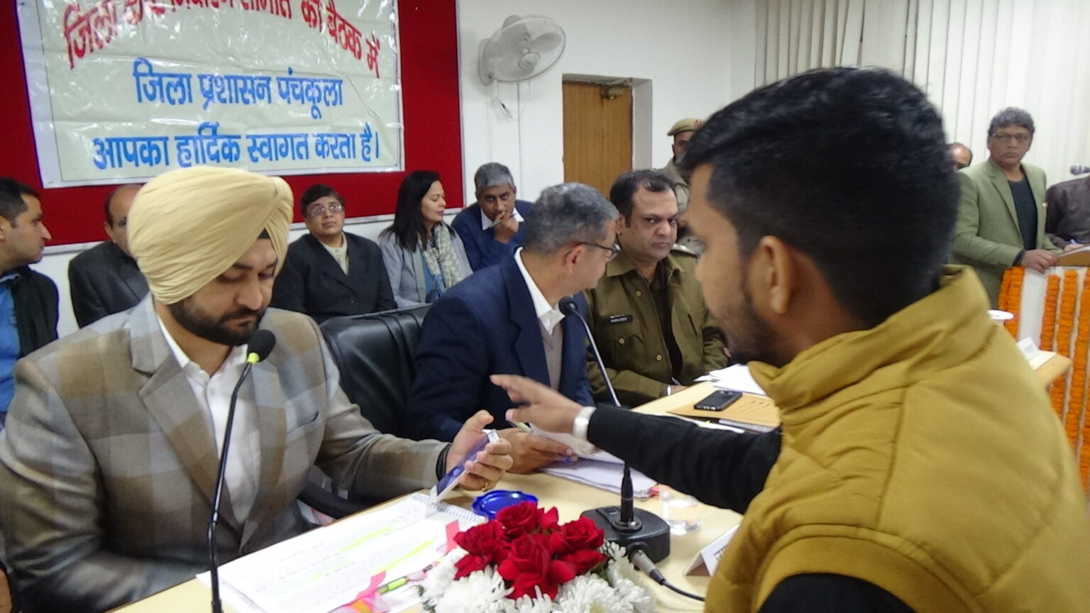 बैठक में उनके साथ हरियाणा विधानसभा अध्यक्ष ज्ञानचंद गुप्ता, कालका विधायक प्रदीप चैधरी, उपायुक्त मुकेश कुमार आहूजा, पुलिस उपायुक्त कमलदीप गोयल, जिला परिषद की अध्यक्ष रितु सिंगला व गैर सरकारी सदस्य तथा सभी संबंधित अधिकारी भी उपस्थित थे। इस दौरान 19 मामले रखे गये, जिनमें से 7 का मौके पर ही समाधान कर दिया गया। ये मामले कार्यकारी अभियंता, जन स्वास्थ्य अभियंत्रिकी, नगर निगम, मुख्य कार्यकारी अधिकारी जिला परिषद, कार्यकारी अभियंता, उतरी हरियाणा बिजली वितरण निगम, पुलिस, राजस्व विभाग, अग्रणी बैंक प्रबंधक, पंजाब नेशनल बैंक, जिला खाद्य एवं आपूर्ति नियंत्रक, जिला खाद्य सुरक्षा अधिकारी पंचकूला, जिला नगर योजनाकार, आबकारी एवं कराधान से संबंधित थे।