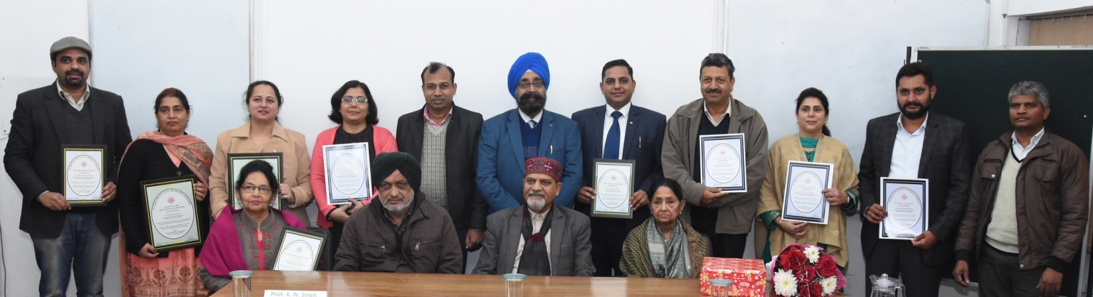The six Best Publication awards for the year 2018, for publication of outstanding research articles with impact factor more than 5.0, were presented to Prof. Parveen Rishi (Microbiology), Dr. NishimaWangoo (Chemsitry), Prof. G. R. Chaudhary (Chemistry), Dr. Rohit Kumar Sharma (Chemistry) and Prof. NavneetKaur (Chemistry). The best publication awards included a citation and award amount of Rs. 5,000 for each awardee. The certificates of appreciation for publishing high impact papers in the year 2018 were bestowed upon Dr. SavitaChaudhary (Chemistry), Prof. RajatSandhir (Biochemistry), Prof. Amarjit Singh Naura (Biochemistry), Dr. VijayataChadha (Nuclear Medicine) and Dr. P. Natarajan (Chemsitry).