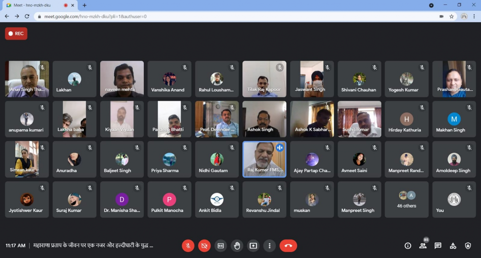 महाराणा प्रताप जी के जीवन पर प्रकाश डालते हुए प्रो दिवेंदर जी, सेक्रेटरी कुलपति पंजाब विश्वविद्यालय ने कई कथाकथित बहुत सी बाते बताई और प्रो अशोक का स्वागत भी किया।