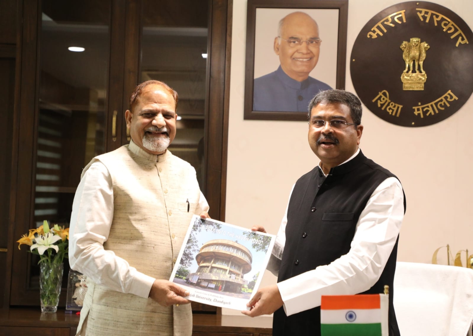 Prof. Raj Kumar, Vice Chancellor, Panjab University met Dharmendra Pradhan, Minister of Education, Goverment of India, at New Delhi, yesterday (21.04.2022). Prof. Raj Kumar apprised Dharmendra Pradhan about various events and activities being undertaken at Panjab University.