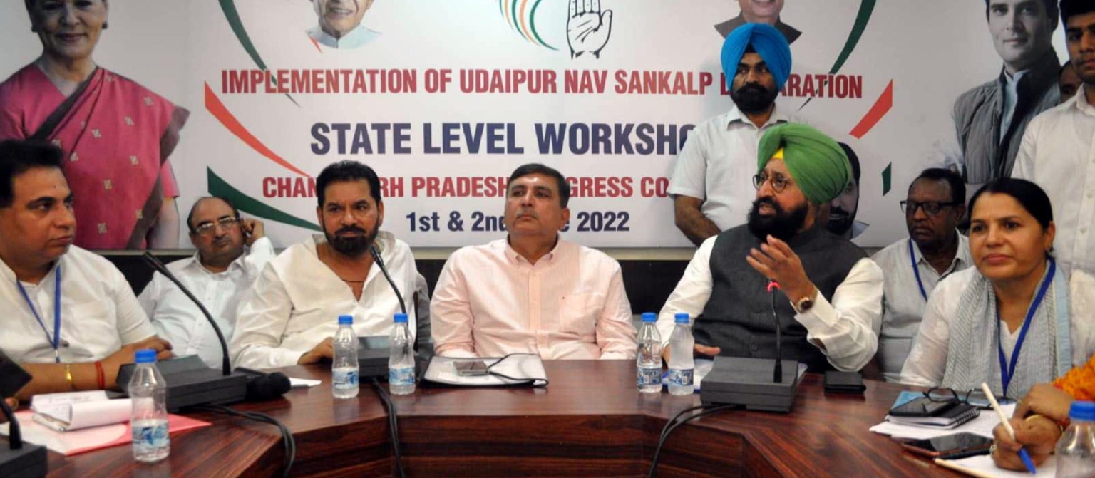 उदयपुर नव संकल्प घोषणा को लागू करने के लिए चंडीगढ़ कांग्रेस की दो दिवसीय कार्यशाला आज यहां पीपुल कन्वेंशन सेंटर, सेक्टर 36-बी, चंडीगढ़ में अखिल भारतीय काग्रेंस कमेटी के महासचिव हरीश चौधरी के समापन भाषण के साथ हुआ, जिसमें उन्होंने प्रतिनभागियों को पार्टी कार्यकर्ताओं की सिफारिशों को लागू करने का आश्वासन दिया। पार्टी के 250 से अधिक प्रतिनिधियों ने पार्टी के सामने खडी़ समस्याओं के समाधान पर गहन मंथन किया।