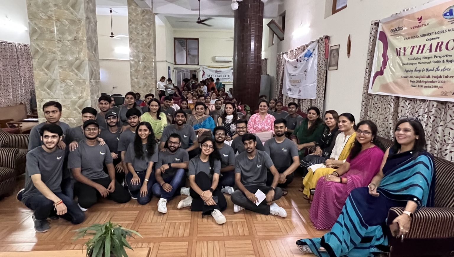 Enactus team along with Girls Hostel No. 3 (GH3) organised “Mytharche”, workshop on Menstrual Health & Hygiene, 4th in series at GH3, Sarojini Hall, Panjab University, conveyed Prof. Kapoor. This series was launched in April 2022 by Enactus team in collaboration with Versatile group, Ludhiana & DIR-India to promote reusable cloth based sanitary napkins designed by the trio, told Preet Kanwal, President, Enactus team.