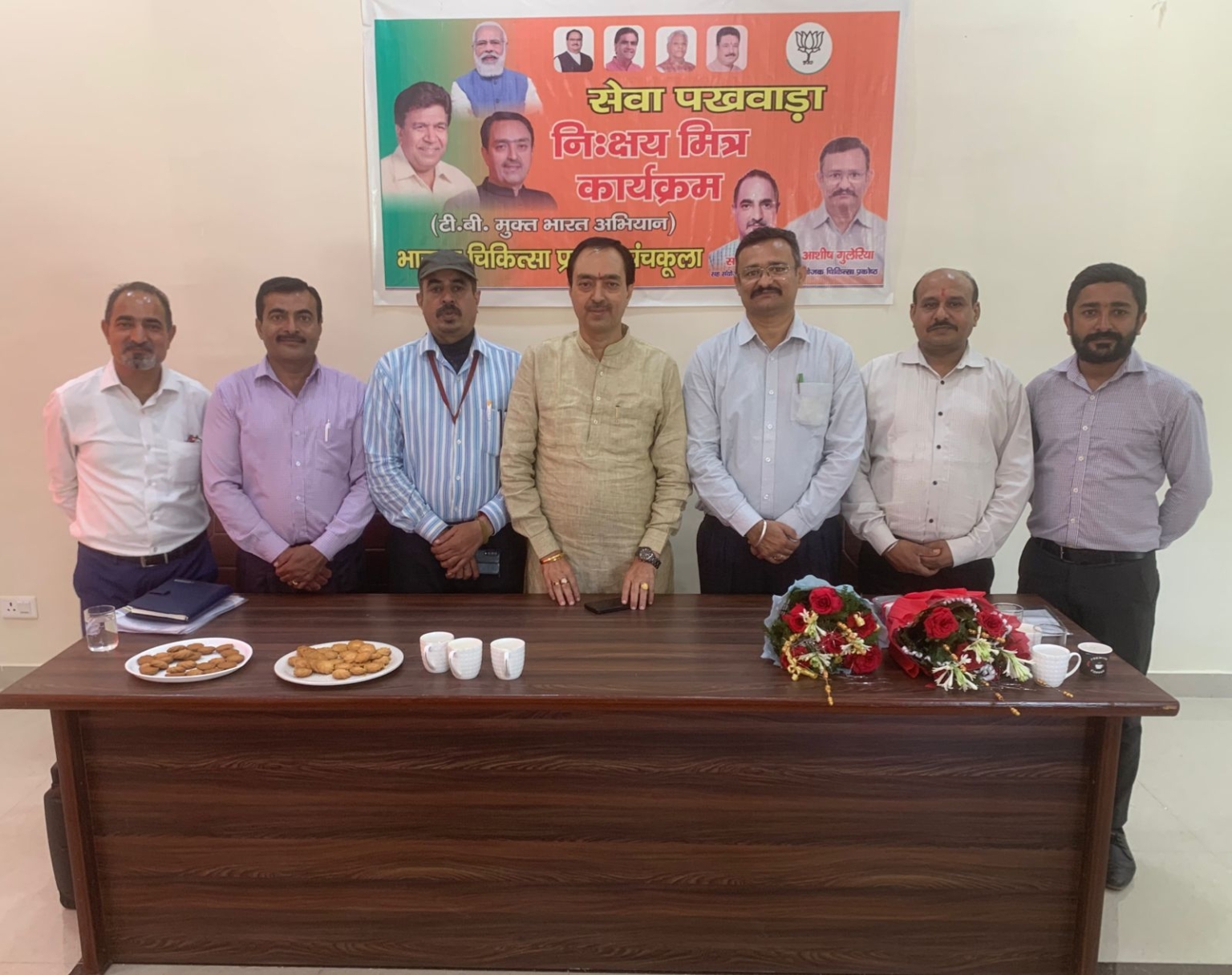 देश के यशस्वी प्रधानमंत्री श्री नरेंद्र मोदी जी के जन्मदिन के उप्ल्क्श में मनाए जा रहे सेवा पखवाड़ा के अंतर्गत भाजपा चिकित्सा प्रकोष्ठ के द्वारा निक्षय मित्र कार्यक्रम को लेकर बैठक का आयोजन किया गया। भाजपा ज़िला अध्यक्ष अजय शर्मा की विशेष उपस्थिति में भाजपा चिकित्सा प्रकोष्ठ के संयोजक आशीष गुलेरिया द्वारा बुलाई गई यह बैठक भाजपा कार्यालय में संपन हुई। इस बैठक में जिलेभर से आए 90 भाजपा कार्यकर्ताओं को निक्ष्य मित्र बनाया गया। सभी 90 निक्ष्य मित्र भाजपा कार्यकर्ता टीबी मुक्त भारत अभियान से जुड़े और उन्होंने ज़िले को टीबी मुक्त बनाने का प्रण लिया।
