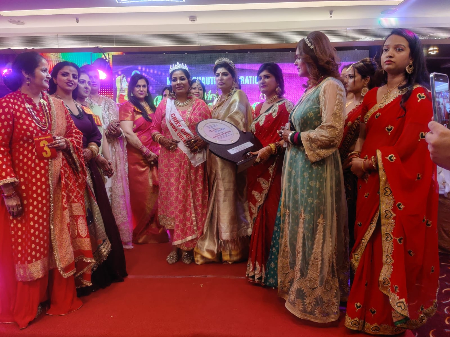 करवा चौथ के पूजन पूजन में कोई भूल-चूक न हो जाए, इस लिए पहले से ही पंडित का भी इंतजाम करवाया गया था। सुबह 11 बजे से महिलाएं सज संवर कर पहुंची थी माया होटल में और शुरू हुआ तम्बोला का दौर , डी जे की धुनों पर डांस , करवा क्वीन कम्पीटिशन के लिए रैंप वॉक आज का मुख्य आकर्षण रहा ।