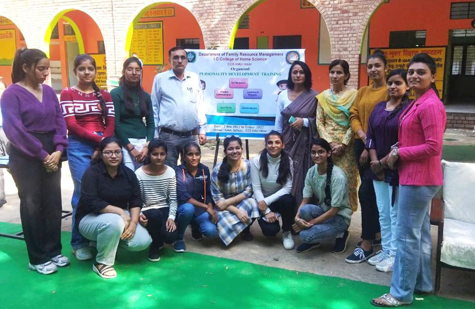 चौधरी चरण सिंह हरियाणा कृषि विश्वविद्यालय के इंदिरा चक्रवर्ती गृह विज्ञान महाविद्यालय की छात्राओं द्वारा गवर्नमेंट स्कूल में पर्सनैलिटी डेवलपमेंट की ट्रेनिंग आयोजित करवाई। गृह विज्ञान महाविद्यालय की अधिष्ठाता डॉ. मंजु महता ने बताया कि आजकल के समय में खुद को बेहतर तरह से प्रेजेंट करना आना बेहद जरूरी है और काम वही कर सकता है जिसे अपने व्यक्तित्व के बारे में अच्छी तरह ज्ञान हो।