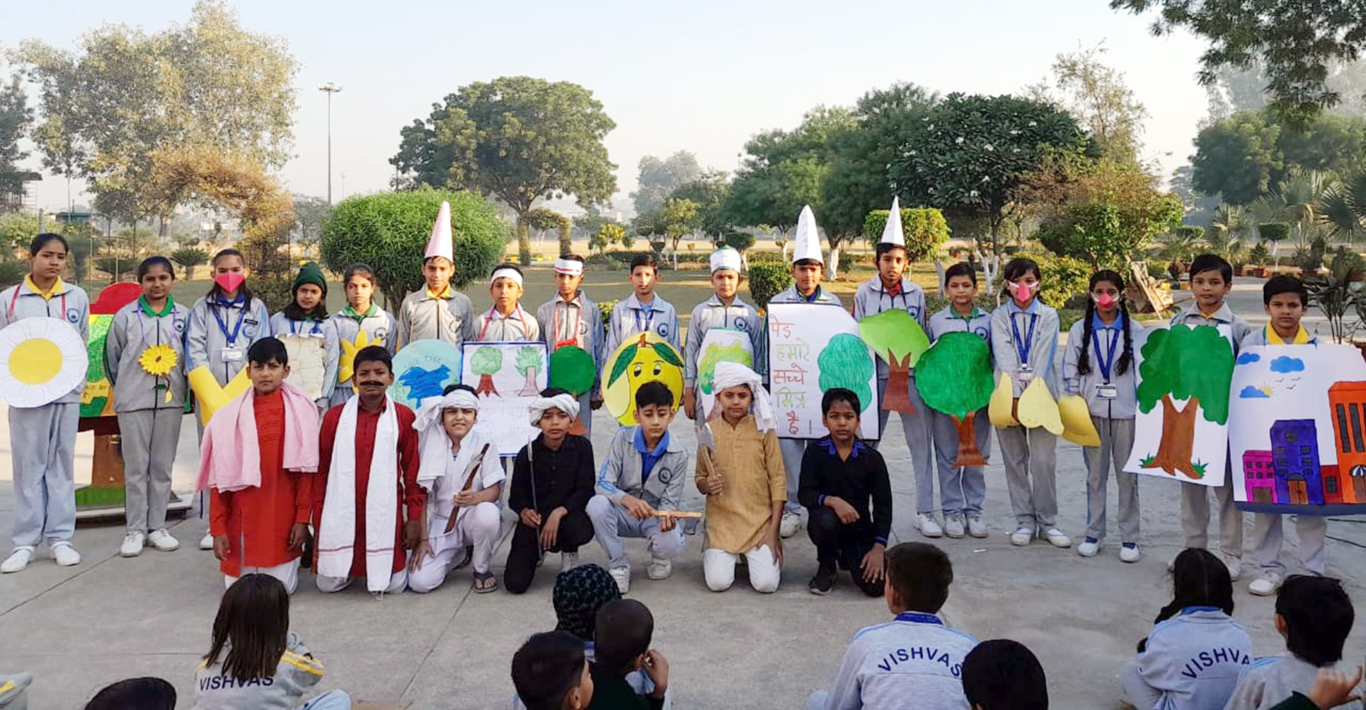 अर्बन एस्टेट स्थित विश्वास सीनियर सैकेंडरी स्कूल में कक्षा पांच के विद्यार्थियों ने पर्यावरण पर एक लघु नाटिका प्रस्तुत करके समाज को पेड़ लगाकर अपने वातावरण को शुद्ध करने का संदेश दिया।