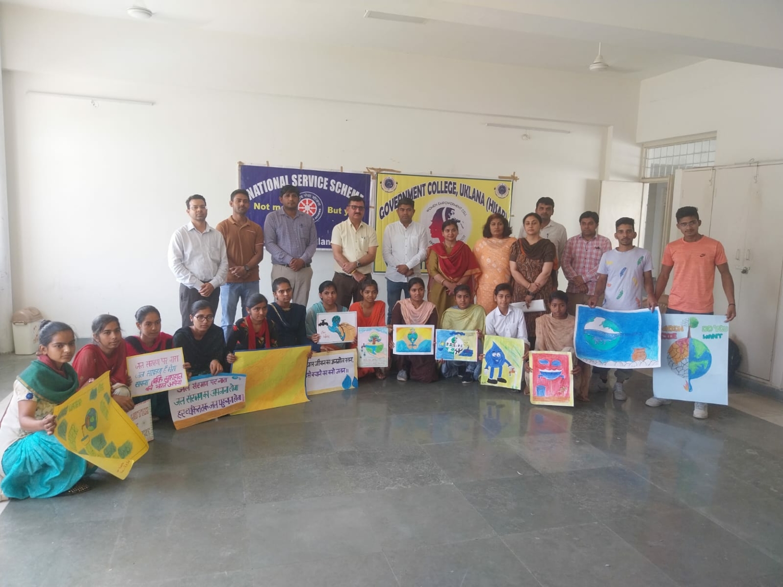 ‘विश्व पृथ्वी दिवस’ की पूर्व संध्या पर राजकीय महाविद्यालय उकलाना की एन.एस.एस. शाखा,महिला प्रकोष्ठ व भूगोल विभाग के तत्वावधान व प्राचार्य डॉ राजेश महत्ता के कुशल मार्गदर्शन में जल सरंक्षण पर आधारित पोस्टर बनाओ व स्लोगन लिखो प्रतियोगिता का आयोजन किया । जिसमें महाविद्यालय के विद्यार्थियों ने हिस्सा लिया। विद्यार्थियों ने कला का सहारा लेते हुए बताया कि किन आदतों को अपना कर पानी को व्यर्थ जाने से बचाया जा सकता है। इस अवसर पर प्राचार्य ने विद्यार्थियों को संबोधित करते हुए बताया कि पृथ्वी पर पीने योग्य जल लगातार कम हो रहा है। यदि प्रत्येक व्यक्ति अपनी आदतों में थोड़ा बहुत भी परिवर्तन लाए तो हम पानी को काफी हद तक बचा सकते हैं। जैसे नहाने के लिए फ़व्वारे के स्थान पर बाल्टी का प्रयोग करना, गाड़ी धोने के लिए पाइप के स्थान पर बाल्टी का प्रयोग करना, सिंचाई के लिए पीने के पानी के स्थान पर वर्षा के पानी का प्रयोग करना आदि। पोस्टर बनाओ प्रतियोगिता में बी.ए. तृतीय का राहुल प्रथम, बी.ए. प्रथम से किरन द्वितीय व बी.ए. द्वितीय से उषा ने तृतीय स्थान प्राप्त किया। स्लोगन लिखो प्रतियोगिता में बी.ए.द्वितीय से सुनीता प्रथम, बी.ए. द्वितीय से नीलम द्वितीय व बी.ए. द्वितीय से ही कविता ने तृतीय स्थान प्राप्त किया। प्राचार्य राजेश मेहता ने सभी विजेताओं को बधाई दी। इस अवसर पर महाविद्यालय का शैक्षणिक स्टाफ़ डॉ अंजू, रविन्द्र कुमार, नरेन्द्र कुमार, आरती, डॉ अमित कुमार , मुकेश कुमार व अन्य गैर शैक्षणिक स्टाफ भी उपस्थित रहे।