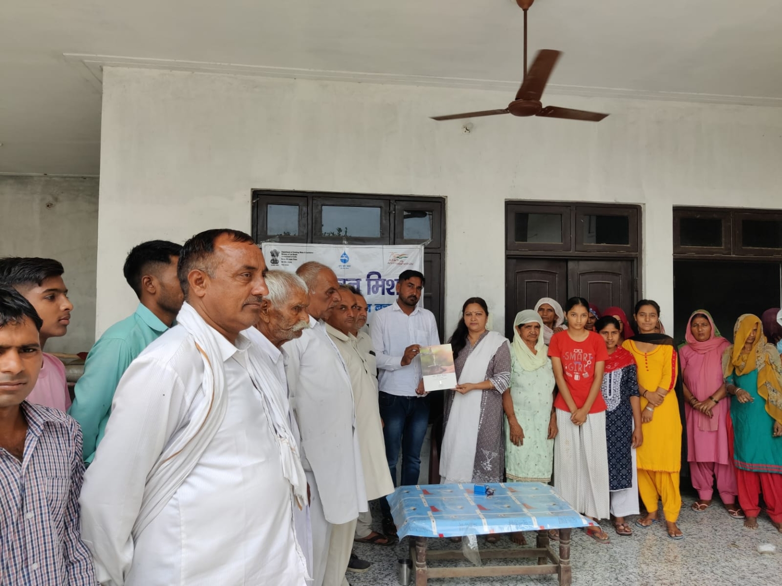 इसका दुरुपयोग कदापि ना करें। उन्होंने उपस्थित जनों को पानी बचाने के टिप्स भी बताएं। उन्होंने यह भी कहा कि बारिश आने वाली है। रेन वाटर हार्वेस्टिंग का प्रयोग करें। पानी की बूंद बूंद बचाएंऔर अपने आसपास वृक्ष भी अवश्य लगाएं। इस अवसर पर ग्रामीणों ने बढ़ चढ़कर भाग लिया और सभी ने जल बचाने का संकल्प लिया। इस अवसर पर जलघर एवं आंगनबाड़ी केंद्र का दौरा कर पानी की स्थिति जांची गई। इस मौके पर सरपंच जसविंदर सिंह को जिला सलाहकार रजनी गोयल द्वारा जल जीवन मिशन की पत्रिका भी भेंट की गई।