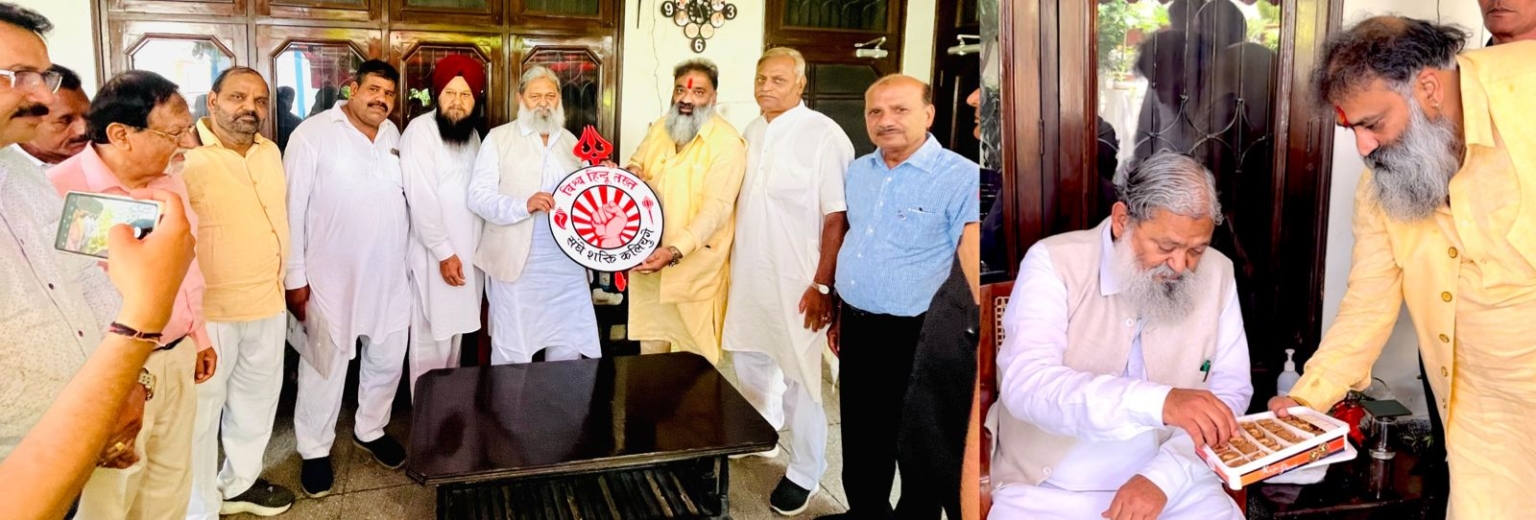 - विश्व हिन्दू तख्त के अंतरराष्ट्रीय प्रमुख वीरेश शांडिल्य ने अनिल विज को दिया भरोसा, तख्त 2024 में मोदी को तीसरी बार पीएम बनाने के लिए पूरे देश सनातनियों को मोदी के साथ जोड़ेगा
