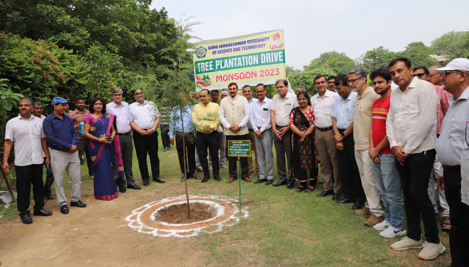 गुरू जंभेश्वर विज्ञान एवं प्रौद्योगिकी विश्वविद्यालय हिसार के कुलपति प्रो. नरसी राम बिश्नोई ने कहा है कि यह विश्वविद्यालय आदि पर्यावरणविद् एवं महान संत गुरु जंभेश्वर जी महाराज के नाम पर स्थापित है। पर्यावरण के प्रति जागरूकता पैदा उत्पन्न करना इस विश्वविद्यालय की प्राथमिकता है। गुजवि देश के सर्वाधिक हरित परिसर वाले विश्वविद्यालयों में से एक है। इस मानसून मौसम में विश्वविद्यालय परिसर में 6 हजार पौधे रोपित करने का लक्ष्य रखा गया है। कुलपति प्रो. नरसी राम बिश्नोई मंगलवार को विश्वविद्यालय के फ्रैगनैन्स गार्डन में वन महोत्सव का शुभारंभ करने के बाद अपना संबोधन दे रहे थे। उन्होंने कहा कि मानसून का मौसम पौधे रोपित करने के लिए सर्वाधिक उपयुक्त मौसम होता है। इस मौसम में पौधों की तेजी से वृद्धि होती है। उन्होंने कहा कि पौधा रोपण अभियान में विश्वविद्यालय के विद्यार्थियों को भी शामिल किया जाना चाहिए। इससे विद्यार्थियों में पेड़ों के प्रति जागरूकता बढ़ेगी। उन्होंने कहा कि पर्यावरण प्रदूषण वर्तमान समय की सबसे बड़ी चुनौती है। पर्यावरण प्रदूषण के कारण पूरा विश्व अभूतपूर्व जलवायु परिवर्तन की चपेट में है। अधिक से अधिक पौधे रोपित करके ही पर्यावरण प्रदूषण की समस्या से निपटा जा सकता है। उन्होंने कहा कि वर्तमान समय में गुरु जंभेश्वर जी महाराज की शिक्षाएं और अधिक प्रासांगिक हो गई हैं। गुरु जी का पर्यावरण संरक्षण संदेश विश्व में अतुलनीय है। अधीक्षक अभियंता प्रो. एचसी गर्ग ने बताया कि पौधा रोपण अभियान विश्वविद्यालय की बागवानी शाखा के सौजन्य से आरंभ किया गया है। पौधे रोपित करने के लिए स्थान निर्धारित कर लिए गए हैं। मानसून के मौसम में पौधा रोपण के लक्ष्य को पूरा कर लिया जाएगा। इस अवसर पर कुलपति के तकनीकी सलाहकार प्रशासनिक प्रो. विनोद छौक्कर, तकनीकी सलाहकार एचआरएम प्रो. संदीप राणा, बागवानी विभाग के कार्यकारी अभियंता सुनील ग्रोवर, सुपरवाइजर पाला राम सहित विश्वविद्यालय के वरिष्ठ अधिकारी, शिक्षक व कर्मचारी भी उपस्थित रहे।