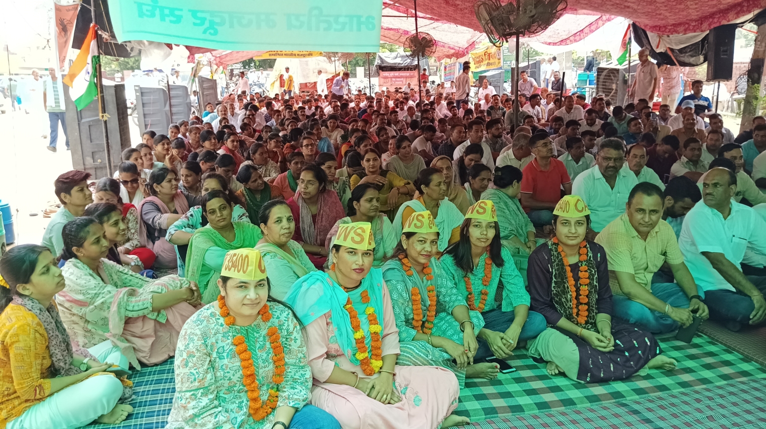 हिसार। वेतनमान में बढ़ोतरी की मांग को लेकर लघुसचिवालय पर चल रहे क्लेरिकल एसोसिएशन वेलफेयर सोसायटी का धरना आज 20वें दिन भी जारी रहा। सोसायटी के जिला प्रधान जितेन्द्र श्योराण ने कहा कि यह अनिश्चितकालीन धरना तब तक जारी रहेगा जब सरकार उनकी मांग को पूरा नहीं करती है। उन्होंने बताया कि सरकार वार्ता पर वार्ता किए जा रही है लेकिन हल निकालने को तैयार नहीं है। उपायुक्त कार्यालय के जिला प्रधान राजेश घोटिया ने बताया कि सरकार से हुई विफल वातार्लाप के बाद पांच कर्मचारी प्रतिदिन भूख हड़ताल पर रहते हैं। जब तक सरकार मांग नहीं मानती तब तक यह भूख हड़ताल जारी रहेगी। आज उपायुक्त कार्यालय की लिपिक भावना, सुदेश, मंजू, कविता तथा मनिता भूख हड़ताल पर रही। जिला मीडिया प्रभारी मुकेश तंवर ने बताया कि राज्य कार्यकारिणी के आह्वान पर कल मंगलवार को तिरंगा यात्रा निकाली जाएगी। तिरंगा यात्रा धरना स्थल से चलकर हरियाणा कृषि विश्वविद्यालय के गेट नम्बर चार से होते हुए वापिस लघुसचिवालय के शहीद स्मारक तक आएगी। शहीद स्मारक पर पुष्प अर्पित कर शहीदों को याद किया जाएगा। शिक्षा विभाग के अनिल ग्रेवाल ने बताया कि राज्य कार्यकारिणी के सदस्य तथा मौलिक शिक्षा विभाग के लिपिक नरेश तेवतिया का सड़क दुर्घटना में निधन हो गया। वे प्रदेश कार्यकारिणी की बैठक में भाग लेकर वापिस लौट रहे थे। नरेश तेवतिया के निधन पर धरना स्थल पर उनकी आत्मा की शांति के लिए दो मिनट का मौन रखा गया। आज के धरने की अध्यक्षता उपायुक्त कार्यालय के औमदा सिंह व प्रेम सिंह द्वारा की गई। इस मौके पर अमर, संदीप मजौका, उषा सिंह, सरोज, प्रिया, गीता मोर, तथा सरोज दहिया आदि मौजूद रहे।
