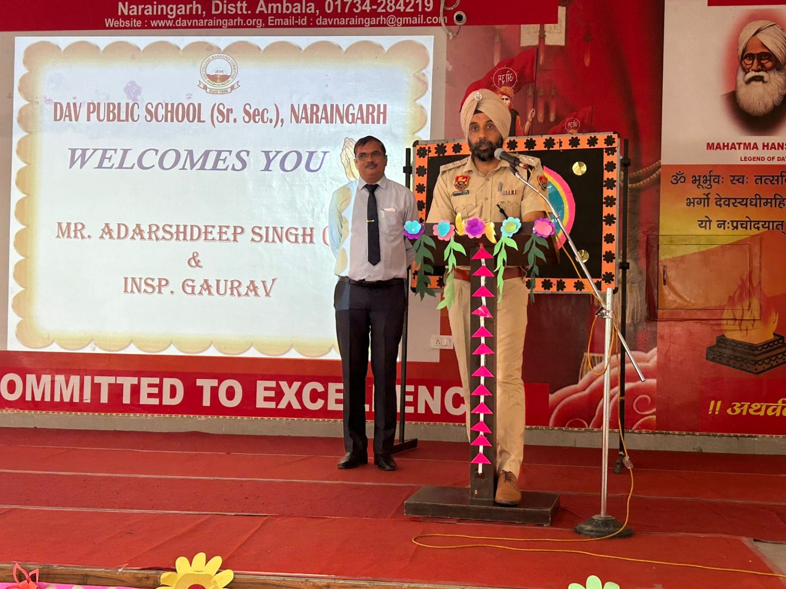 डी. ए. वी. पब्लिक (सी. सै.) विद्यालय में पुलिस प्रशासन की ओर से ‘पुलिस की पाठशाला’अभियान का आयोजन किया गया, जिसमें डीएसपी आदर्शदीप सिंह (एचपीएस), एसएचओ नारायणगढ़ गौरव कुमार, एएसआई हरदीप कौर, (वूमैन सैल) साइबर सेल एक्सपर्ट कांस्टेबल रजत व रीडर राजेंद्र ने इस कार्यक्रम मुख्य रूप से शिरकत की । कार्यक्रम में विद्यार्थियों ने बढ़ -चढक़र भाग लिया । प्रधानाचार्य आर पी राठी ने पुलिस अधिकारियों का स्वागत पौधा व ओउम् का पटका पहना कर किया। पुलिस अधिकारियों ने विद्यार्थीयों को कानून की विस्तारपूर्वक जानकारी दी।