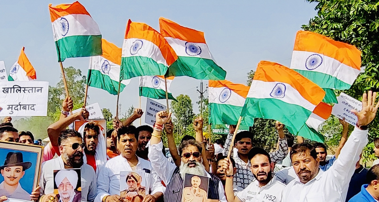 मेरी आन तिरंगा है, मेरी शान तिरंगा मेरी जान तिरंगा है और तिरंगे की तरफ उठने वाली आंख फोड़ दी जाएगी । उपरोक्त शब्द एंटी टेरोरिस्ट फ्रंट इंडिया के राष्ट्रीय अध्यक्ष एव विश्व हिंदू तख्त प्रमुख वीरेश शांडिल्य ने अपने तिरंगा उठाये समर्थकों को संबोधित करते हुए कहे। शांडिल्य ने आज चंडीगढ़ अम्बाला रोड पर हरियाणा पंजाब सीमा पर हाथ मे तिरंगा लेकर यात्रा निकाली और इंकलाब जिंदाबाद, भारत माता की जय, जय जवान जय किसान, वंदे मातरम के नारे लगाए और शांडिल्य समर्थको ने हाथ मे तिरंगे व शहीद भगत सिंह, राजगुरु, चंदर शेखर आजाद, सुबाष चंद्र बोस, उधम सिंह के चित्र उठा रखे थे।