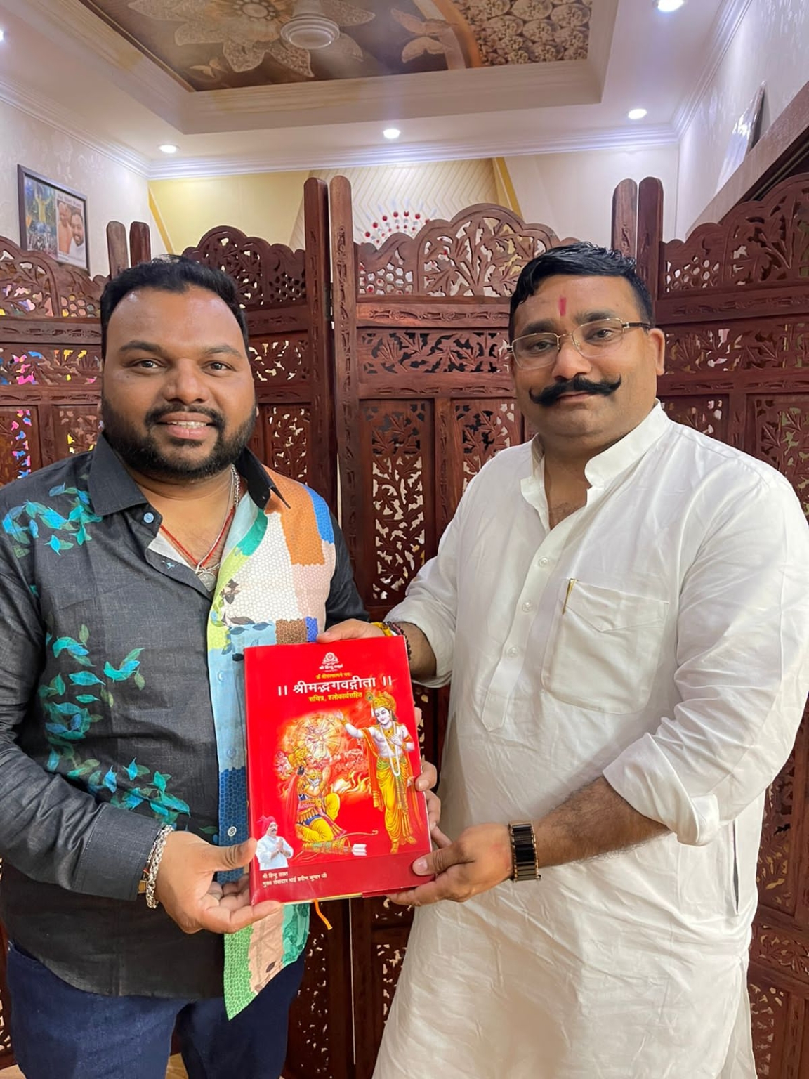 • भजन गायक कन्हैया मित्तल व श्री हिन्दू तख़्त के राष्ट्रीय अध्यक्ष प्रवीण कुमार की हुई शिष्टाचार भेंट