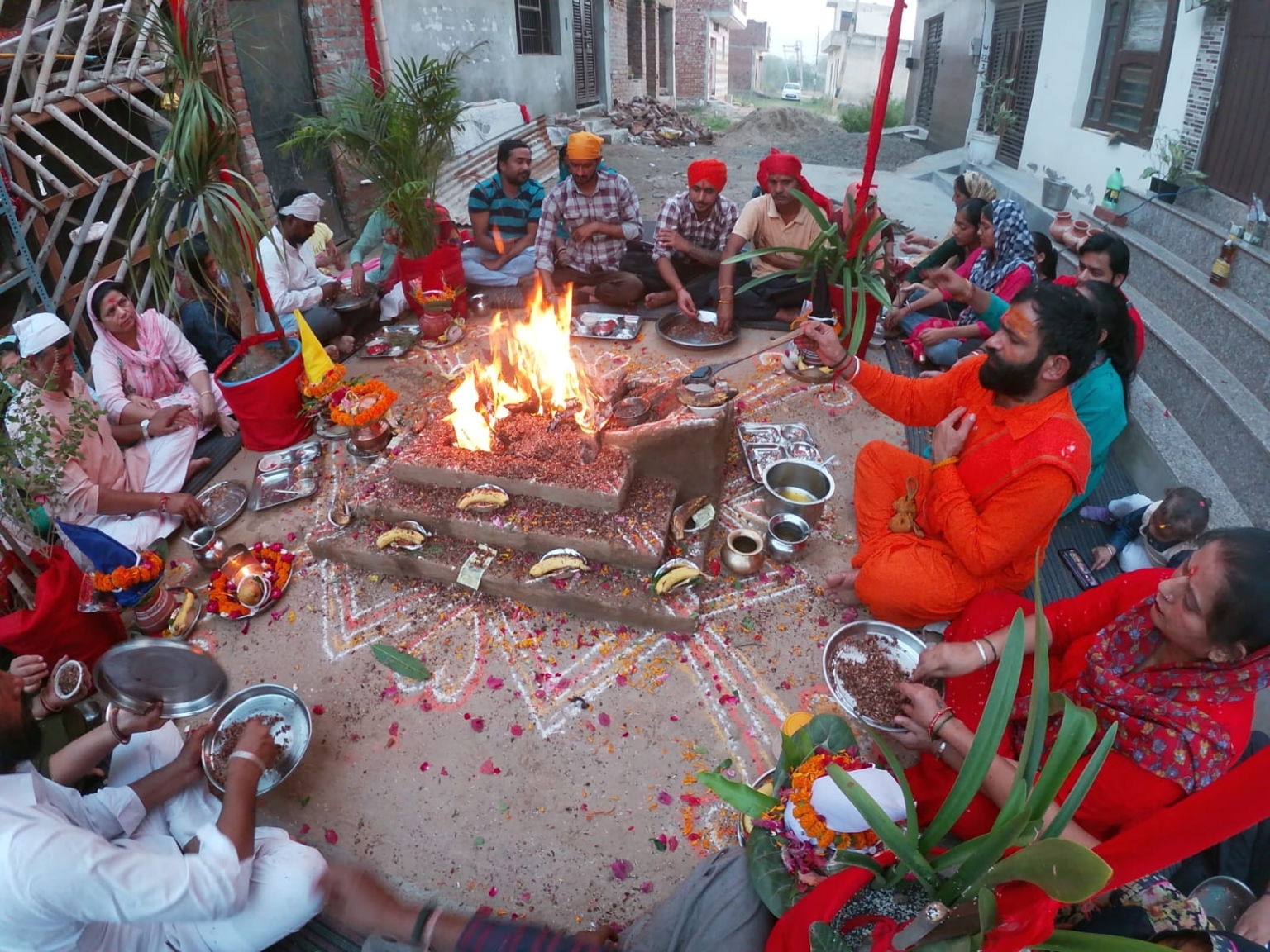 कलश बेदी, अष्टचक्र दल, ओम, स्वस्तिक से सर्वतोभद्र मंडल का यज्ञ कुंड बनाकर हुई पूजा
