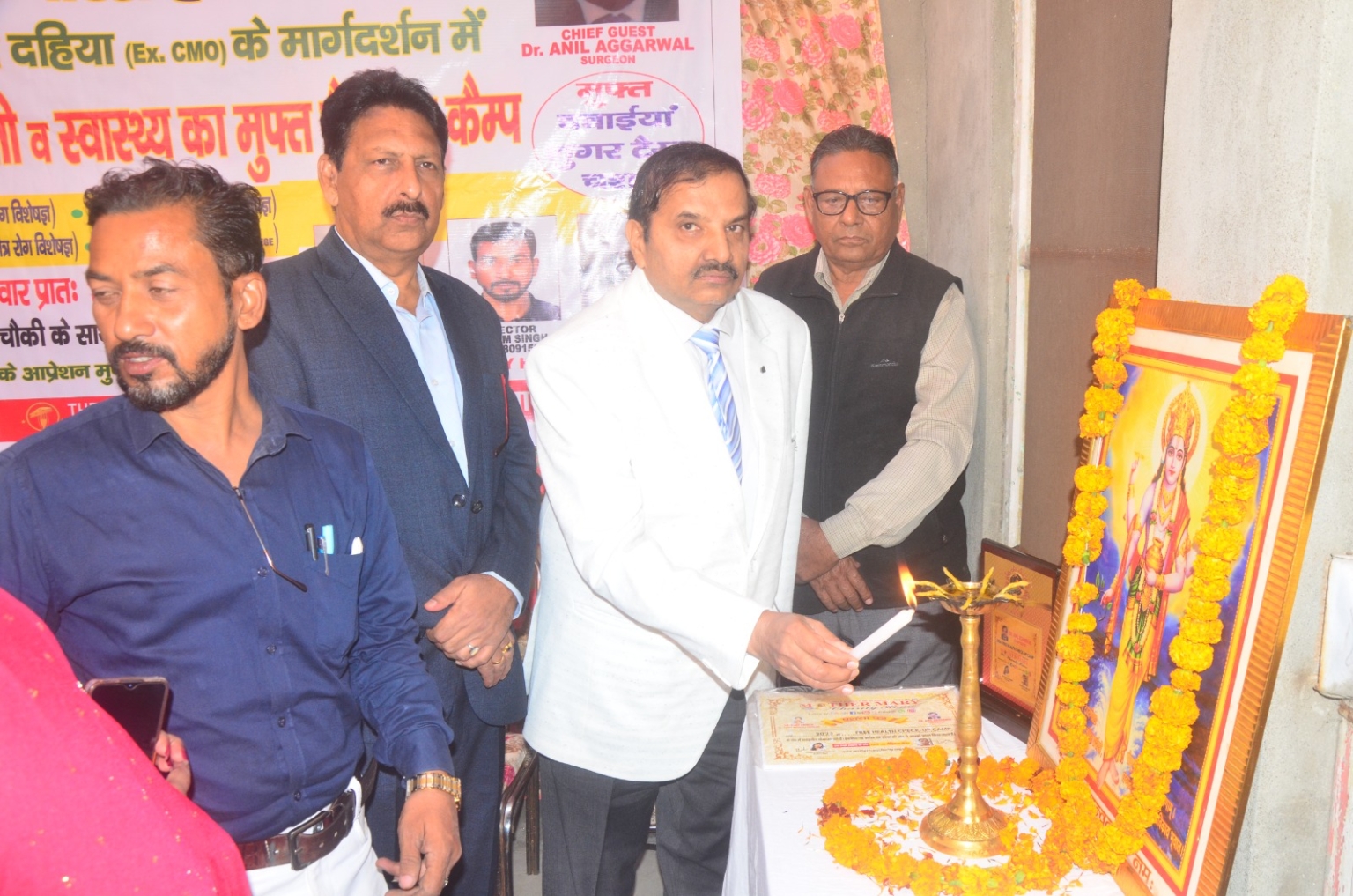 मदर मेरी चेरिटी होम संस्था द्वारा एक कदम स्वास्थ्य की ओर लक्ष्य 1000 मेडिकल कैम्प मुहिम के तहत आज 50वां मुफ्त स्वास्थ्य चेकअप कैम्प डॉ विजय दहिया पूर्व मुख्य चिकित्सा अधिकारी यमुना नगर के मार्गदर्शन में दहिया भवन, नज़दीक राम पूरा चौकी,मुंडा माज़रा यमुना नगर मे आयोजित भगवान वाल्मीकि धर्मशाला, वार्ड नम्बर 11, गधौली कॉलोनी, नजदीक चिट्टा मंदिर यमुना नगर में संस्था की अद्यक्षा खुशी, डायरेक्टर विक्रम सिंह, व सरदार बलविंदर सिंह की अध्यक्षता में आयोजित किया गया। जिसमें गुलाटी हॉस्पिटल अम्बाला शहर के डॉ अजय गुलाटी की निगरानी में डॉक्टरों की टीम द्वारा मरीजों की आंखों का चैकअप व स्वास्थ्य का चेकअप किया गया और जरूरत मन्द मरीजों को दवाइयां ओर चश्मे भी मुफ्त दिए गए। कैम्प का शुभारंभ डॉ अनिल अग्रवाल समाज सेवी व सुप्रसिद्ध सर्जन द्वारा दीप प्रज्वलित करते हुए कहा कि इस तरह के फ्री कैम्प लगाना संस्था का सराहनीय कार्य है क्योंकि बिना आँखों की रोशनी के इंसान का जीवन नरक के समान है। डॉ अग्रवाल ने कहा कि मानव सेवा में किया गया प्रत्येक कार्य सराहनीय होता है। कैम्प में गुलाटी हॉस्पिटल से डॉ सरिता गुलाटी, विघ्नेश हॉस्पिटल से डॉ मनीष गोयल, जे एन कपूर डी ए वी डेंटल कॉलेज के द्वारा मरीजों के दांतों का चेकअप, कल्याण ट्रस्ट की ओर से शुगर टेस्ट किया गया, हर मैदान फतेह की ओर से मरीजों को चश्में दिये गए। कैम्प में 350 मरीज़ो का चेकअप कर मुफ़्त दवाइयां दी गई। कैम्प में 8 मरीजों के आँखों का ऑपरेशन के लिए अम्बाला गुलाटी हॉस्पिटल में मुफ़्त भेजा गया। कैम्प में नीलम बंसल , ऐश्वर्या कौशिक, मेयर हाउस से दिनेश जैन ,डॉ शिव कुमार योगाचार्य आदि उपस्थित थे।