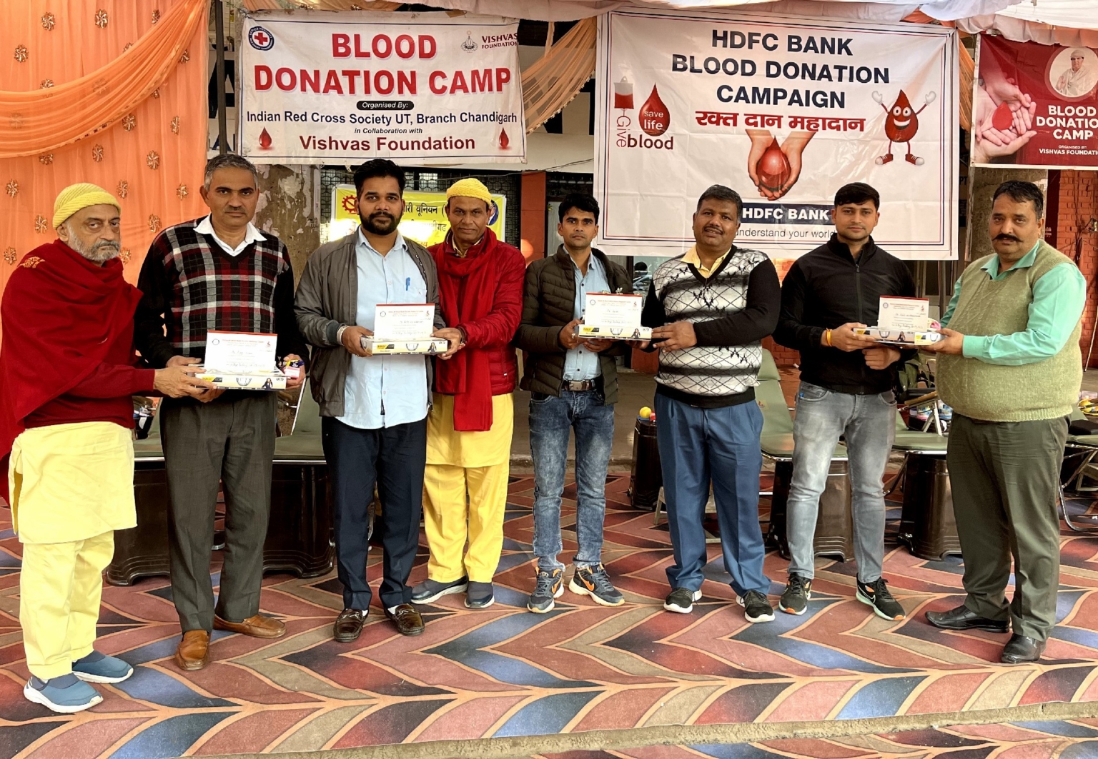 विश्वास फाउंडेशन पंचकूला, एचडीएफसी बैंक व इंडियन रेडक्रॉस सोसाइटी यूटी चंडीगढ़ ने संयुक्त रूप से मिलकर गुरुदेव श्री स्वामी विश्वास जी के आशीर्वाद से एमओएच के सामने सेक्टर 17 सी चंडीगढ़ में रक्तदान शिविर आयोजित किया। शिविर में 48 लोगों ने रक्तदान करने के लिए पंजीकृत करवाया 8 को स्वास्थ्य संबंधी दिक्कतों की वजह से डाक्टरों द्वारा रक्तदान करने से मना कर दिया गया। ब्लड बैंक रोटरी एण्ड ब्लड बैंक सोसाइटी रिसोर्स सेंटर सेक्टर 37 चंडीगढ़ की टीम ने डॉक्टर मनीष राय की देखरेख में 40 यूनिट्स रक्त एकत्रित किया।