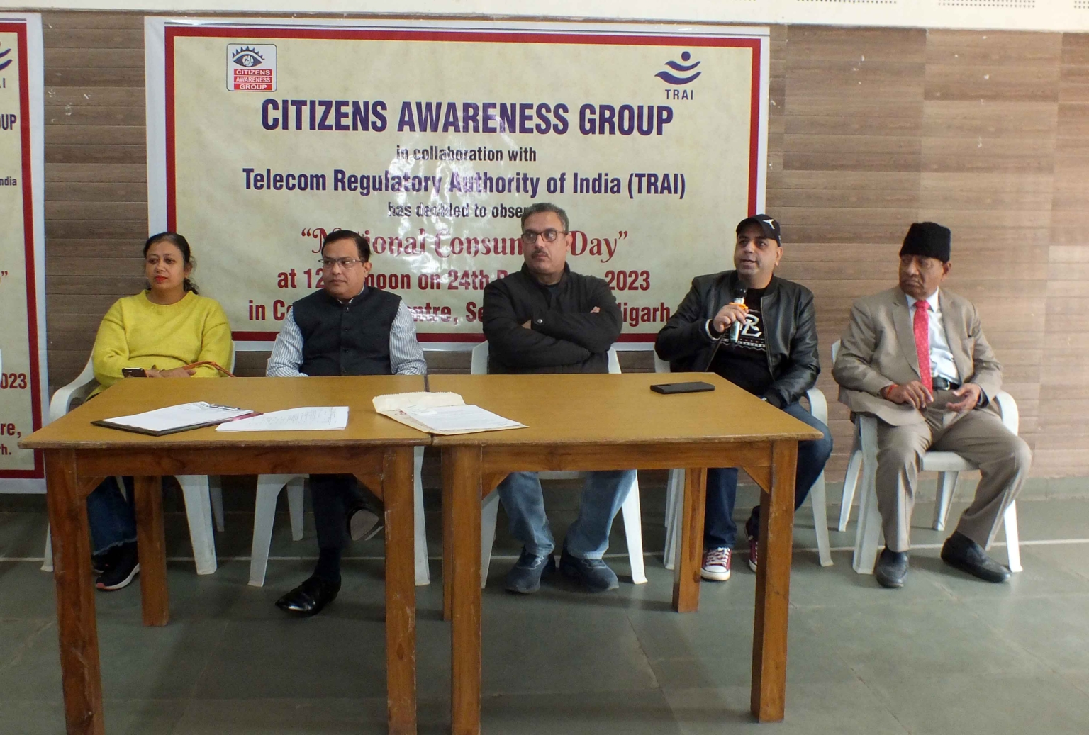 सिटीजन्स अवेयरनेस ग्रुप (सीएजी) ने टेलीकॉम रेगुलेटरी अथॉरिटी  ऑफ़ इंडिया (ट्राई) के सहयोग से सामुदायिक केंद्र, सेक्टर 28 में दूरसंचार ग्राहकों के अधिकारों और कर्तव्यों के बारे में जागरूकता पैदा करने के लिए राष्ट्रीय उपभोक्ता दिवस पर एक विशेष सत्र का आयोजन किया। इस अवसर पर सिटीजन्स अवेयरनेस ग्रुप के चेयरमैन सुरिंदर वर्मा ने उपभोक्ताओं को मोबाइल नो पोर्टिबिलिटी (एमएनपी), अनचाहे कमर्शियल कॉल (यूसीसी) और वैल्यू एडेड सर्विसेज (वीएएस), रोमिंग चार्जेज व अन्य के बारे में शिक्षित करने के लिए कस्टमर आउटरीच प्रोग्राम आयोजित करने के लिए टेलीकॉम रेगुलेटरी ऑथोरिटी ऑफ़ इंडिया की अहम भूमिका की सराहना की। सत्र के उपरांत उपभोक्ता शिकायत निवारण पर खुला सत्र भी आयोजित किया गया जहां बार-बार कॉल ड्रॉप, कॉल ड्रॉप, नेटवर्क समस्या और टॉवर रेडिएशन की समस्याओं पर चर्चा की गई। उपभोक्ताओं के सवालों का जवाब एयरटेल के सीनियर एग्जीक्यूटिव (ऑडिट) संदीप वालिआ, रिलायंस जियो इंफोकॉम के डीजीएम संजीव वोहरा, कनेक्ट ब्रॉडबैंड मोहाली की डिप्टी मैनेजर रेखा व सीनियर मैनेजर गुलशन अरोड़ा के  प्रतिनिधियों ने बखूबी दिया। इस अवसर पर सत्र में उपस्थित उपभोक्ताओं में विंग कमांडर (रिटायर्ड) तरसेम भारद्वाज और ऊषा महाजन ने इस प्रकार के ज्ञानवर्धक सत्र की सराहना की। ग्रुप के चेयरमैन सुरिंदर वर्मा ने आगे कहा कि सिटीजन्स अवेयरनेस ग्रुप जून 2016 से ट्राई के साथ काम कर रहा है और इसे कंज्यूमर एडवोकेसी ग्रुप के रूप में नामित किया गया है, जो भारत में सबसे सक्रिय एनजीओ में से एक है।