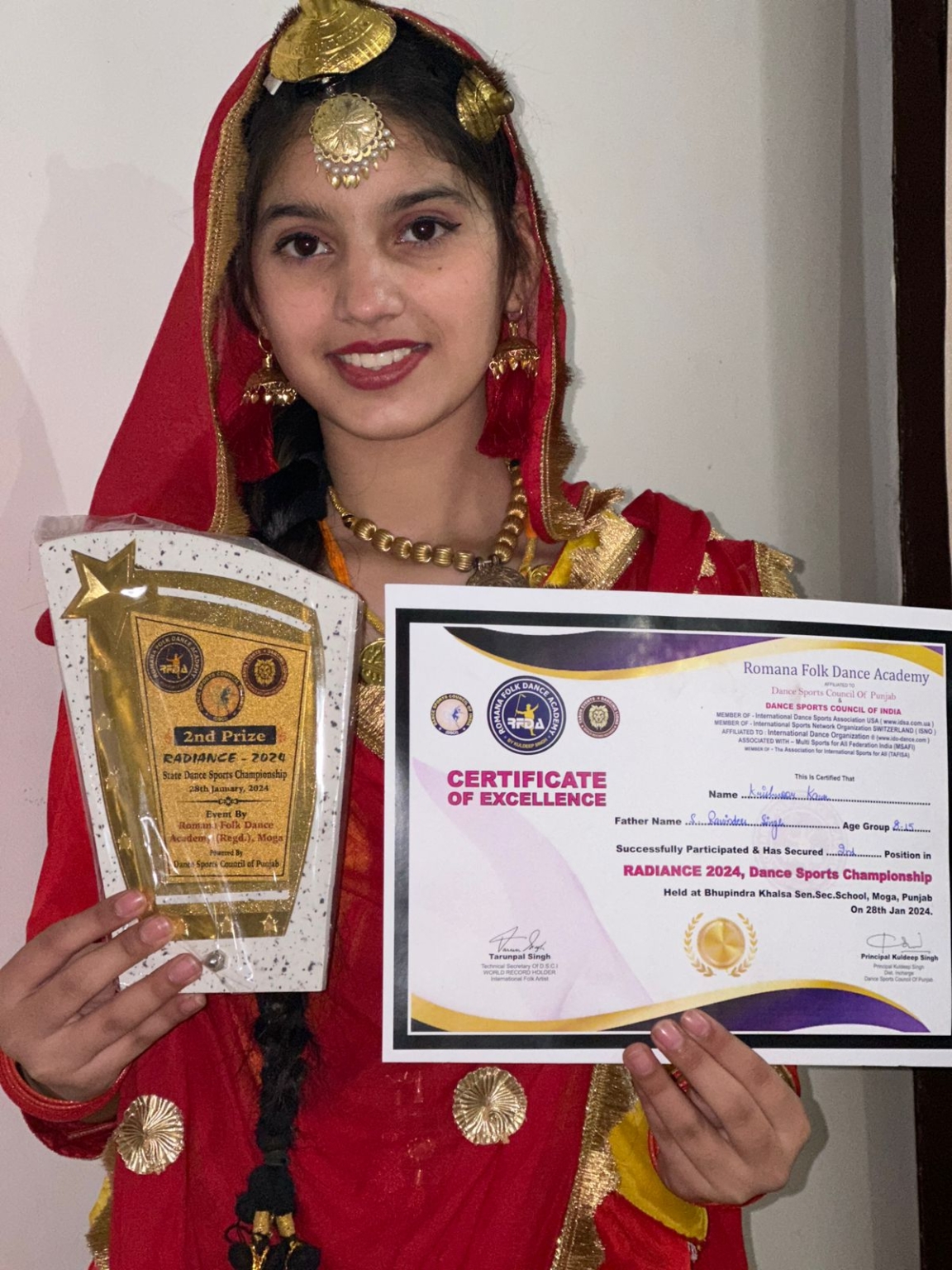 डांस स्पोर्ट्स काउंसिल ऑफ इंडिया और डांस स्पोर्ट्स काउंसिल ऑफ पंजाब ने मोगा में 8 वर्ष से 15 वर्ष आयु वर्ग के लिए राज्य स्तरीय नृत्य प्रतियोगिता का आयोजन किया। जिसमें दसमेश ग्लोबल स्कूल बरगाड़ी की छात्रा कृष्णूर कौर ने लोक नृत्य में भाग लिया और अपनी कला का प्रदर्शन करते हुए इस नृत्य प्रतियोगिता में दूसरा स्थान प्राप्त कर स्कूल का नाम रोशन किया। डांस स्पोर्ट्स काउंसिल ऑफ इंडिया और डांस स्पोर्ट्स काउंसिल ऑफ पंजाब ने छात्रा कृष्णूर कौर को ट्रॉफी और सर्टिफिकेट देकर सम्मानित किया। स्कूल के प्रधानाचार्य श्री अजय शर्मा ने छात्रों को इस उपलब्धि के लिए बधाई दी और उन्हें भविष्य में बेहतर प्रदर्शन करने के लिए प्रोत्साहित किया।