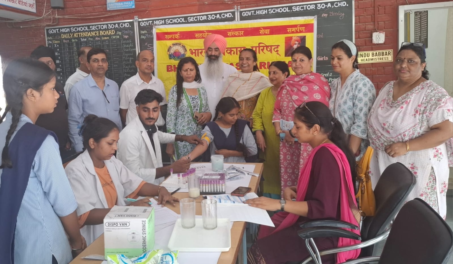 ‘एनीमिया मुक्त भारत पखवाड़ा’ के उपलक्ष्य में भारत विकास परिषद (बीवीपी) ईस्ट-1 ने गवर्नमेंट हाई स्कूल सेक्टर 30 ए चंडीगढ़ में रक्त परीक्षण शिविर का आयोजन किया।