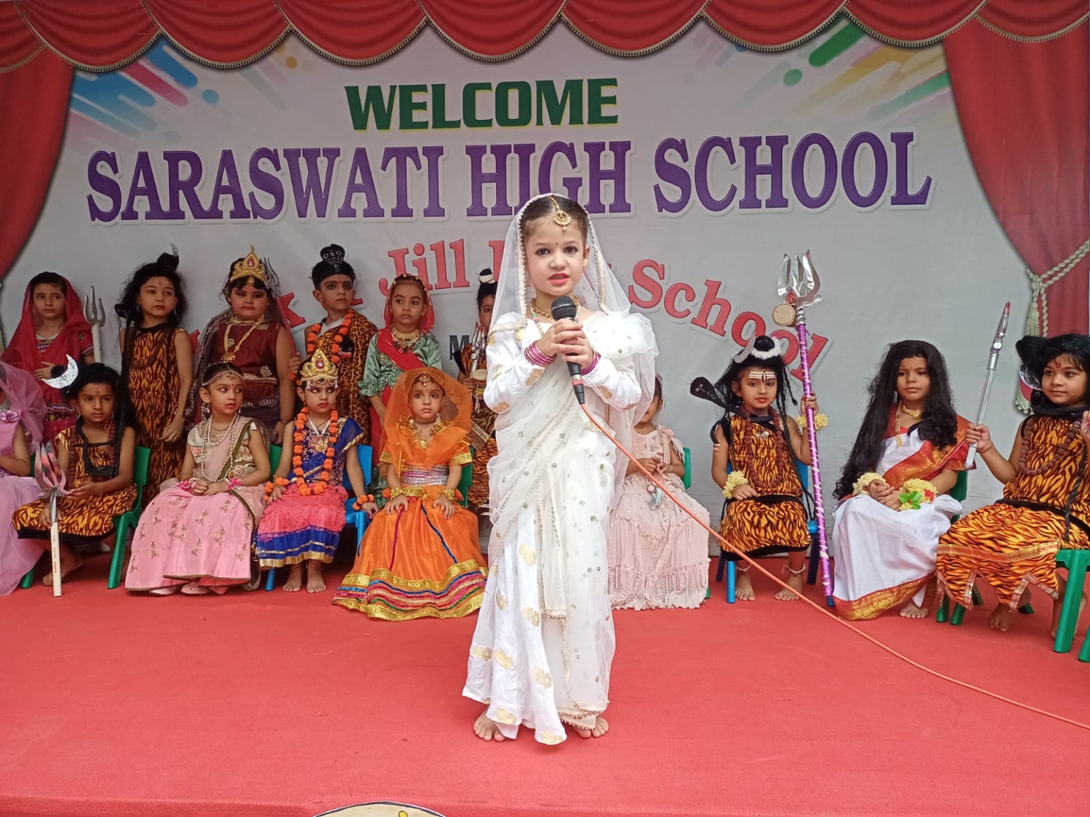 स्कूल के नन्हे-मुन्ने बच्चों ने भगवान शिव और माता पार्वती का रूप धारण कर अपनी प्रस्तुति दी, जिससे पूरा माहौल भक्तिमय हो गया। बच्चों ने ओम नमः शिवाय और महामृत्युंजय मंत्र का जाप किया, जो सभी के लिए एक आध्यात्मिक अनुभव था।