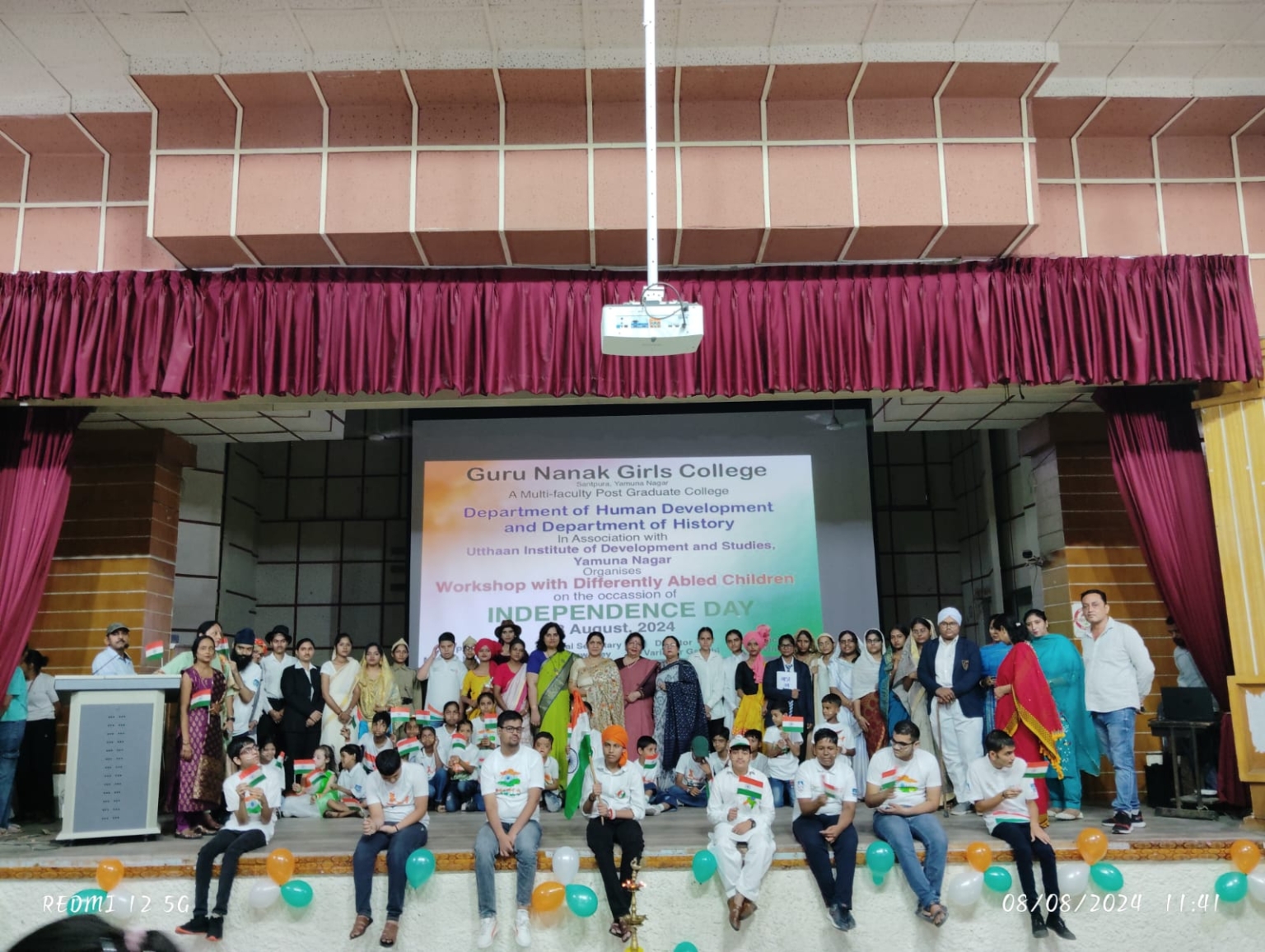 उत्थान संस्थान की कोशिश इकाई के दिव्यांग बच्चो ने स्वतंत्रता दिवस मनाने की पहल गुरु नानक गर्ल्स कॉलेज में की।जोकि जी एन जी कॉलेज की डायरेक्टर व प्राचार्य की देखरेख में संपन्न हुआ।कार्यक्रम की शुरुआत दीप प्रज्ज्वलित कर किया गया।सभी दिव्यांग बच्चो ने रंगारंग कार्यक्रम प्रस्तुत कर वहां मौजूद सभी शिक्षिकाओं व छात्रो का मन मोह लिया। जिसमे सभी ने बच्चो की भूरी भूरी प्रशंसा की।