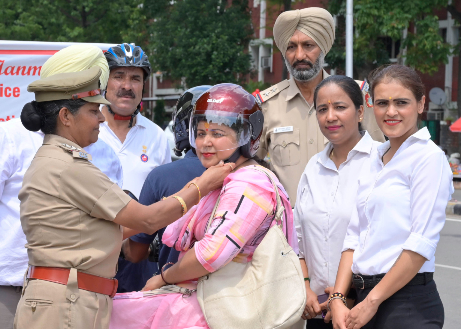 • महिला वाहन चालकों को फ्री बांटे हेलमेट