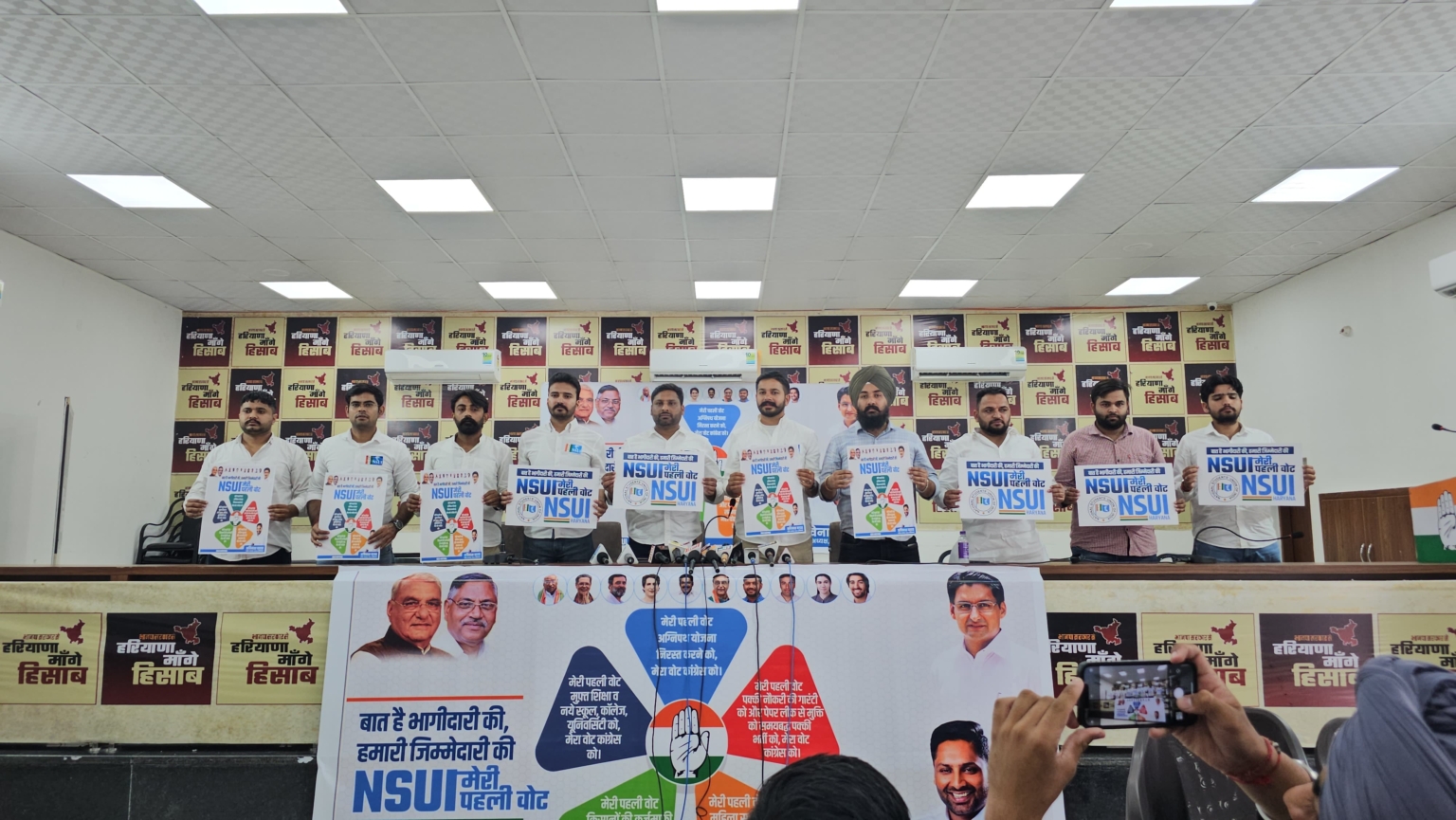 उन्होंने कहा कि उन्हें महर्षि दयानंद यूनिवर्सिटी रोहतक और कुरुक्षेत्र यूनिवर्सिटी के छात्रों ने बताया कि उनकी फीस बेतहाशा बढ़ाई गई है। गरीब परिवारों के बच्चे यह फीस नहीं भर सकते। किसान परिवारों के बच्चों का कहना है कि उनकी फसलों को उचित समर्थन मूल्य नहीं मिल रहा। किसान परिवार कर्ज के जाल में फंसे हुए हैं। हमारा मानना है कि मुफ्त शिक्षा पर सभी का अधिकार है। एनएसयूआई ‘मेरी पहली वोट’ कैंपेन के जरिये हरियाणा के सभी कॉलेज में जाकर स्टूडेंट्स के बीच प्रचार करेगी कि वे अपनी पहली वोट कांग्रेस को दें। कांग्रेस पार्टी ही उनकी इन सभी समस्याओं को दूर करेगी और छात्र हित में फैसले लेगी।