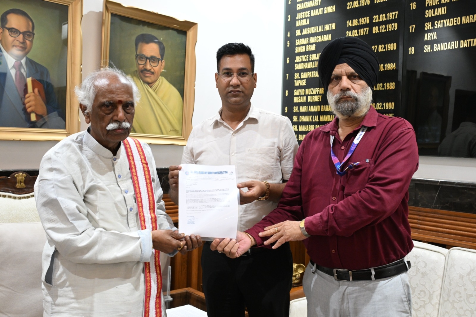 ऑल इंडिया बैंक ऑफिसर्स कन्फेडरेशन (AIBOC) हरियाणा की ओर से, कॉमरेड हरविंदर सिंह, उप महासचिव, कॉमरेड विनय कुमार, SBIOA पंचकूला मॉड्यूल के अध्यक्ष, को हरियाणा के माननीय राज्यपाल श्री बंडारू दत्तात्रेय से मिलने का विशिष्ट सम्मान प्राप्त हुआ।