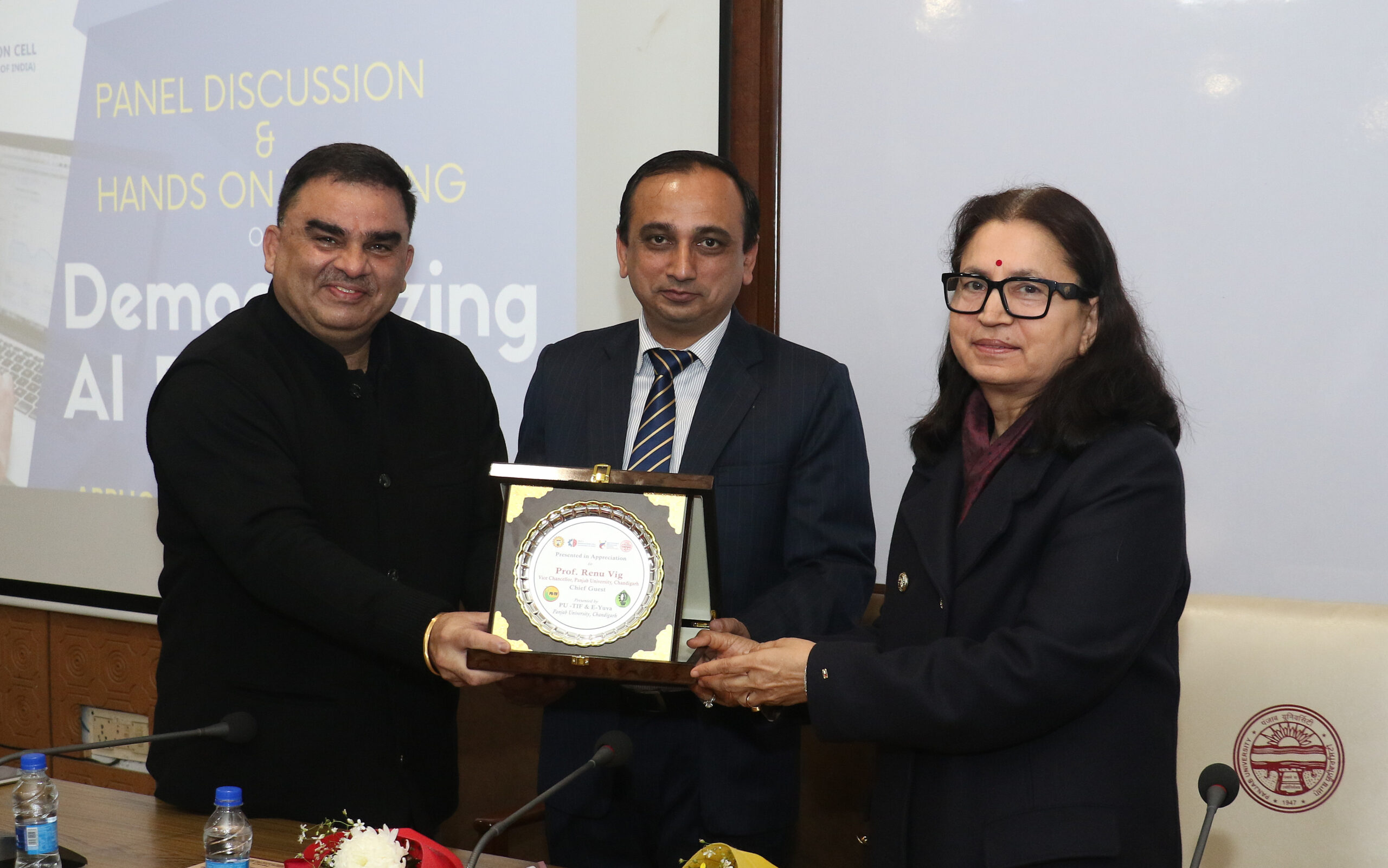Addressing the programme, Vice Chancellor Prof. Renu Vig spoke on the ethical use of AI, government AI missions, scalable and bias-aware frameworks, the role of foundational knowledge alongside AI, and applications of AI across sectors.